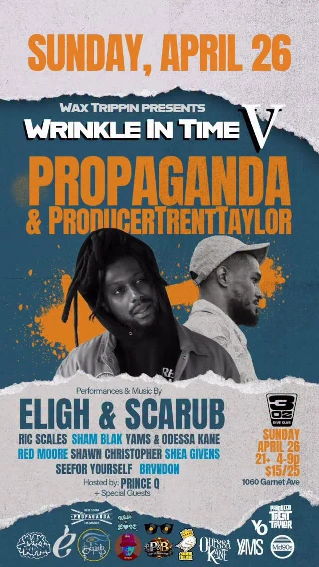 With LA flowing through his veins & armed with a bold message, Propaganda has assembled a body of work that challenges and guides. Propaganda’s ideas stem from where he sits at the intersection. He sees how cultures cross and inspire one another, and can see the oneness of us all. Propaganda will cause you to nod your head, but more importantly he will stretch your mind & heart.